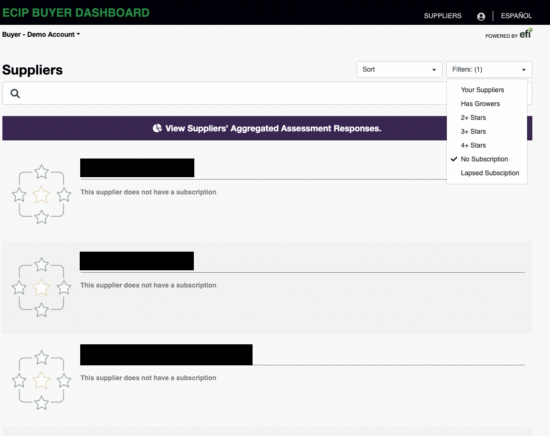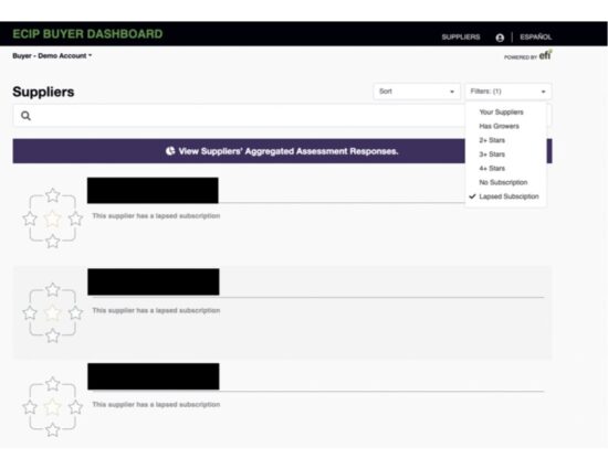 In response to user feedback and to improve the ECIP LAB experience, the filter feature on the Buyer Dashboard has been updated. Buyers can now distinguish between suppliers with a lapsed Supplier LAB subscription and those that have never had a subscription.